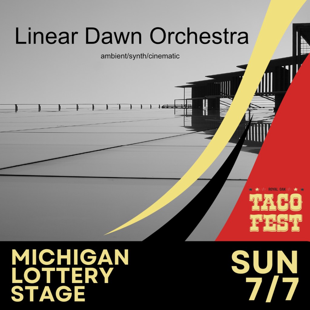 Good sound setup, a cool, receptive crowd and the weather held out. The stage was right behind railroad tracks and a massive freight train came through, cruising at about four miles an hour. It blew its horn right in the middle of a song and I, being unaware of the train, thought my synth blew up or something with the sound system went haywire since it was at around the same volume level as the monitors. I turned and saw the train then realized what was going on. I’m happy to say I didn’t miss a beat. The train rumbled through for about ten minutes, leaving a trail of diesel exhaust to breath in. Stage life at an outdoor venue!
